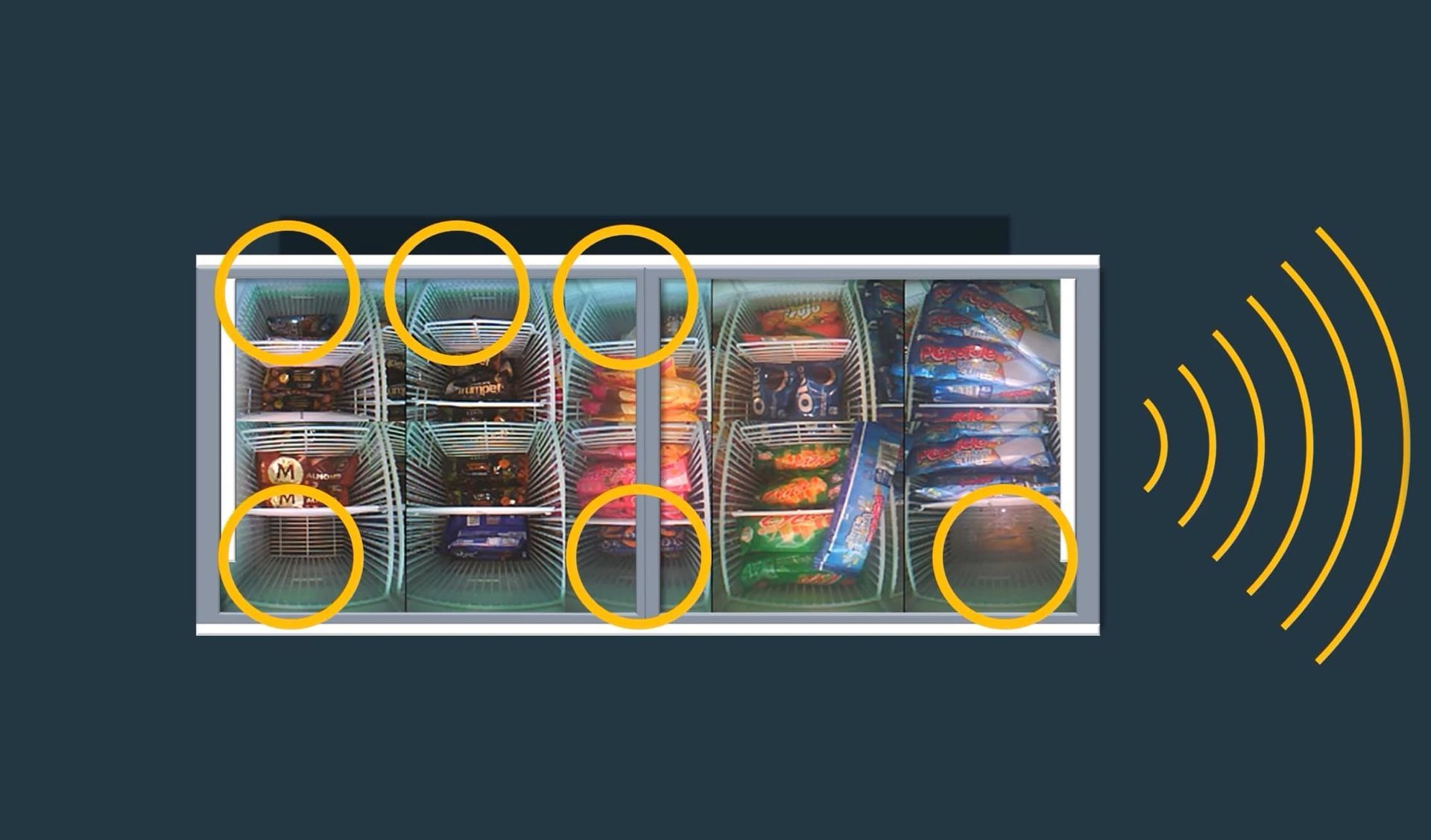 An AI-powered freezer that uses onboard cameras and cellular connectivity to remotely track stock levels and monitor performance in real time.